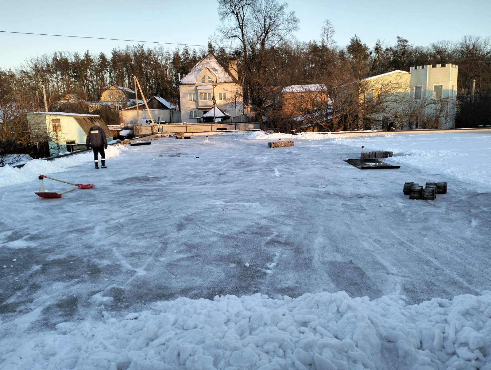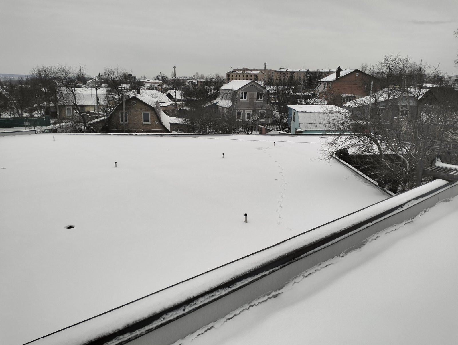 В зимовий період будівництво сонячної станції починається з прибирання даху від снігу.