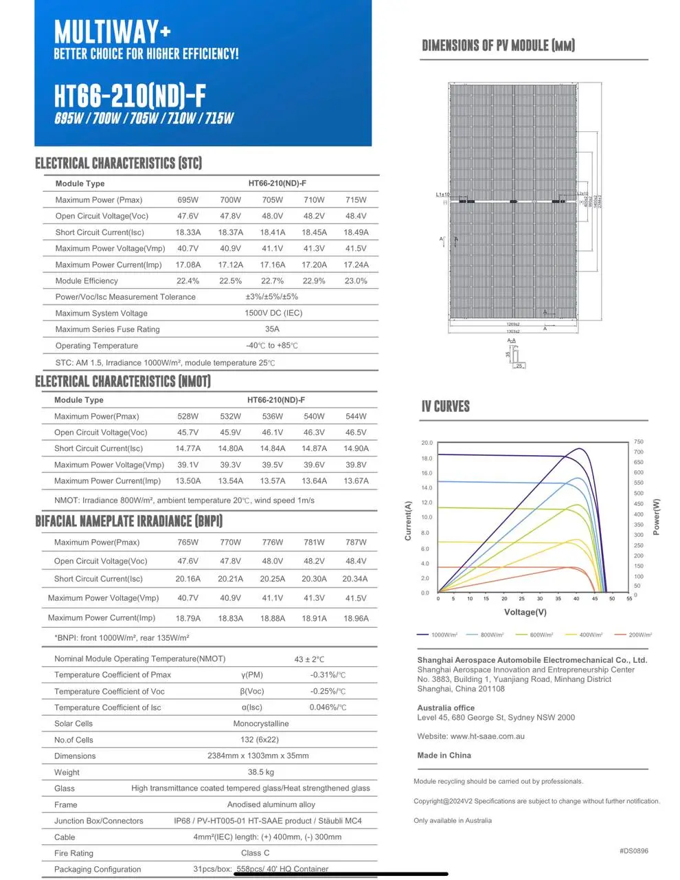 Сонячні панелі HT-SAAE HT66-210(ND)-F 705 Вт